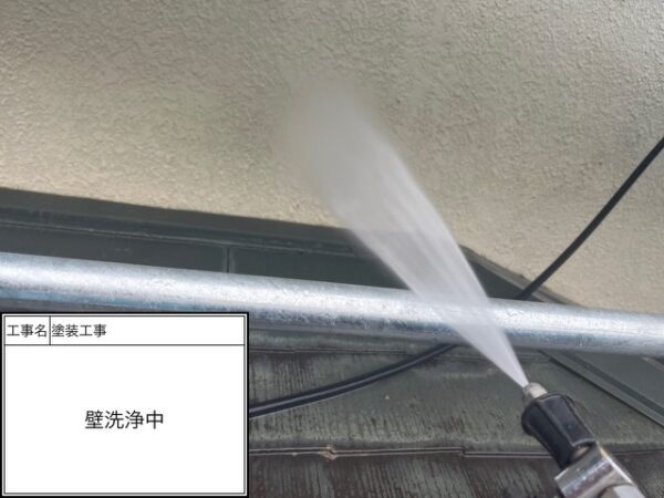 外壁の下塗りに使用したのも同じくエポパワーシーラーです。透明でわかりにくいですが塗装前と比べると艶感が圧倒的に出ています。軒天もサイディングだったので一緒に外壁と下塗りを入れて工事を進めていきました!