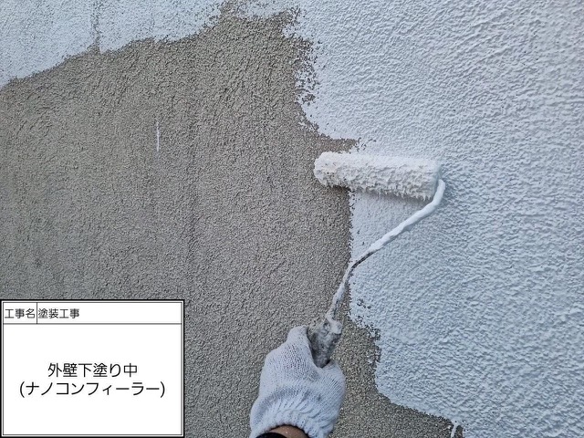 下塗りを塗る前に補修をして更に上から補修材の効果がある施工を行います。