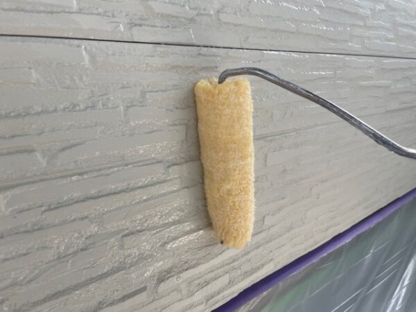 普通ならサイディングはシーラーが用いられますが、チョーキングの量や外壁の状態を見ると均一に吸わせることが難しく、それではシーラーの役割が機能しない為、プライマーにて押さえ込みの下塗りで頑丈な下地を作りました。