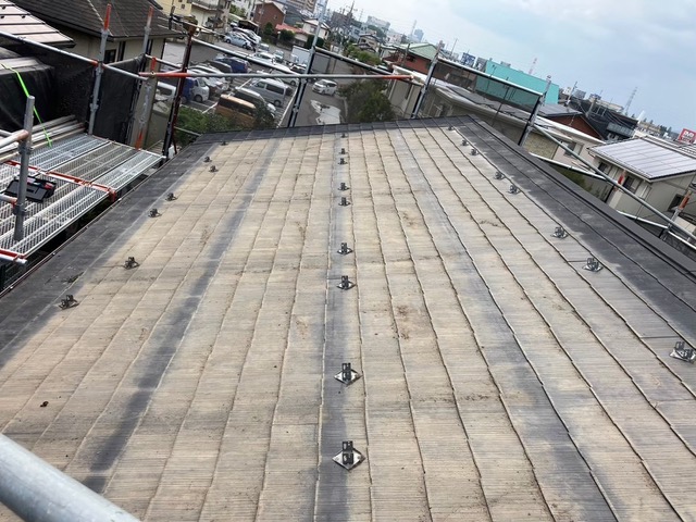 洗浄しているときに劣化している部分が破損しても破片を無くさずに持っていて屋根補修を行います。