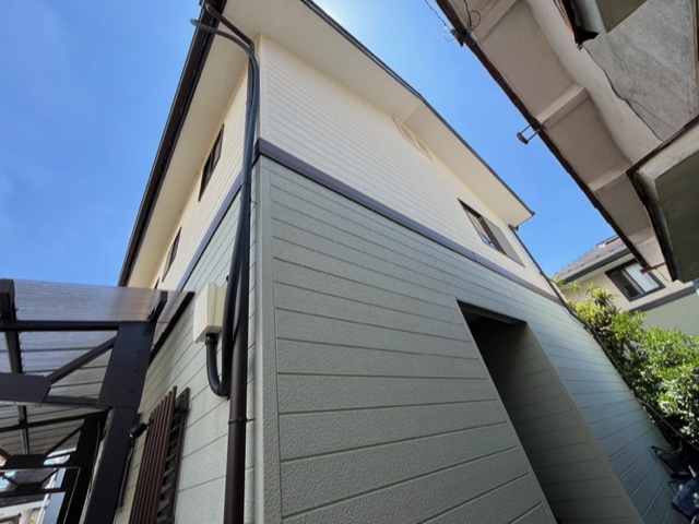 外壁の上塗りに使用したのはエスケープレミアムシリコンです。